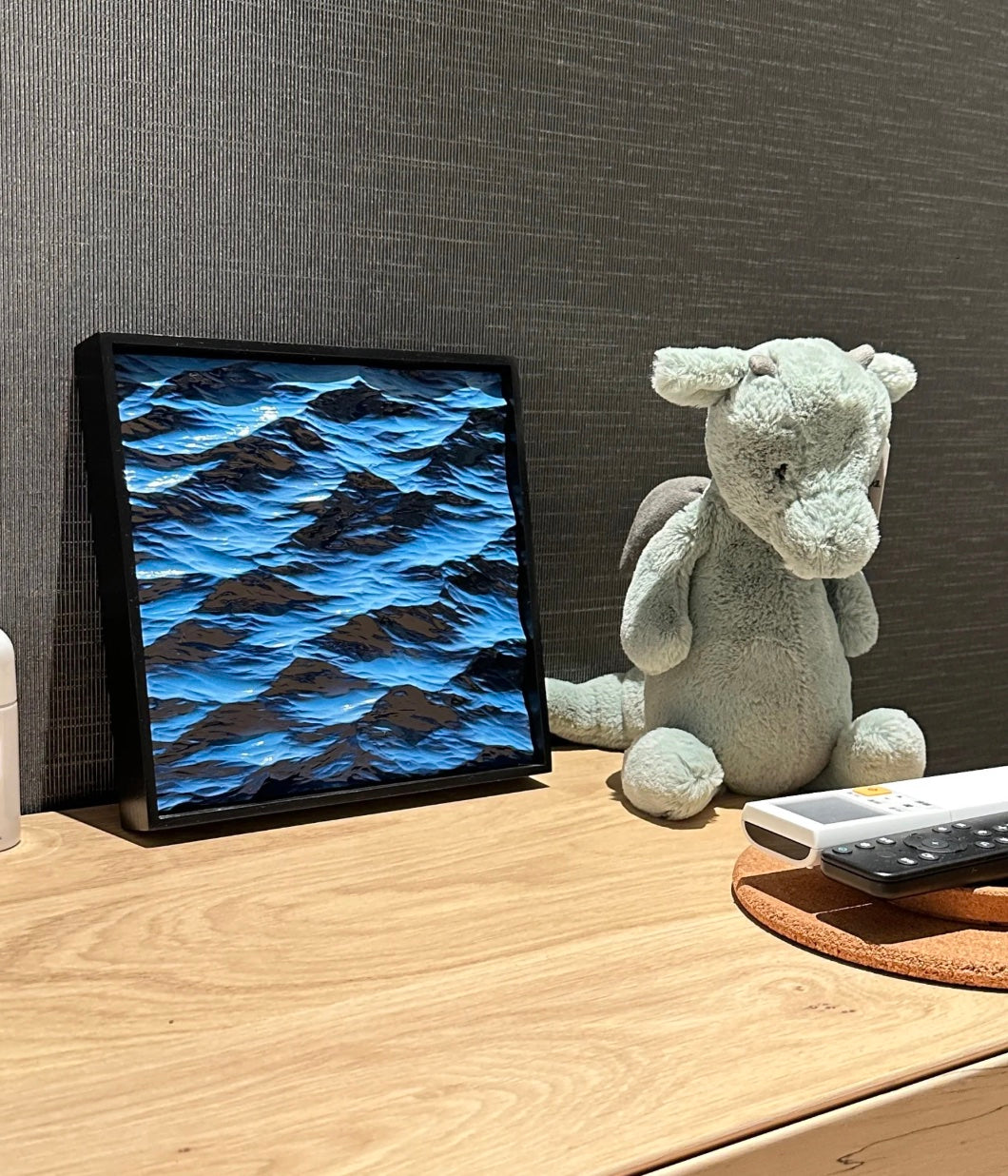 I’m obsessed with this little wave art! The shades of blue are so calming. I placed it on my floating shelf and it adds just the right amount of texture to the space. Great quality for the price.