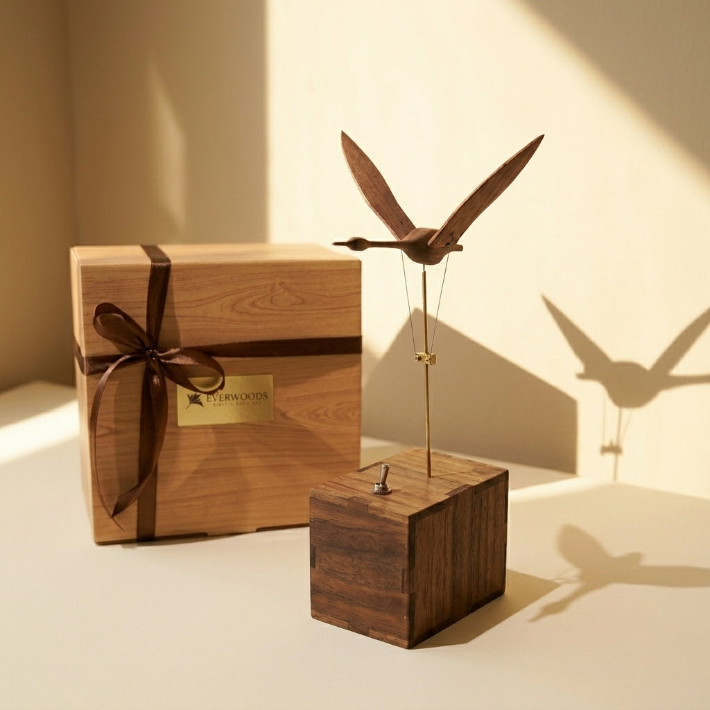 The beauty is in the details — the natural grain of the wood, the balanced motion of the wings, and the quiet elegance of something small that feels well made.
