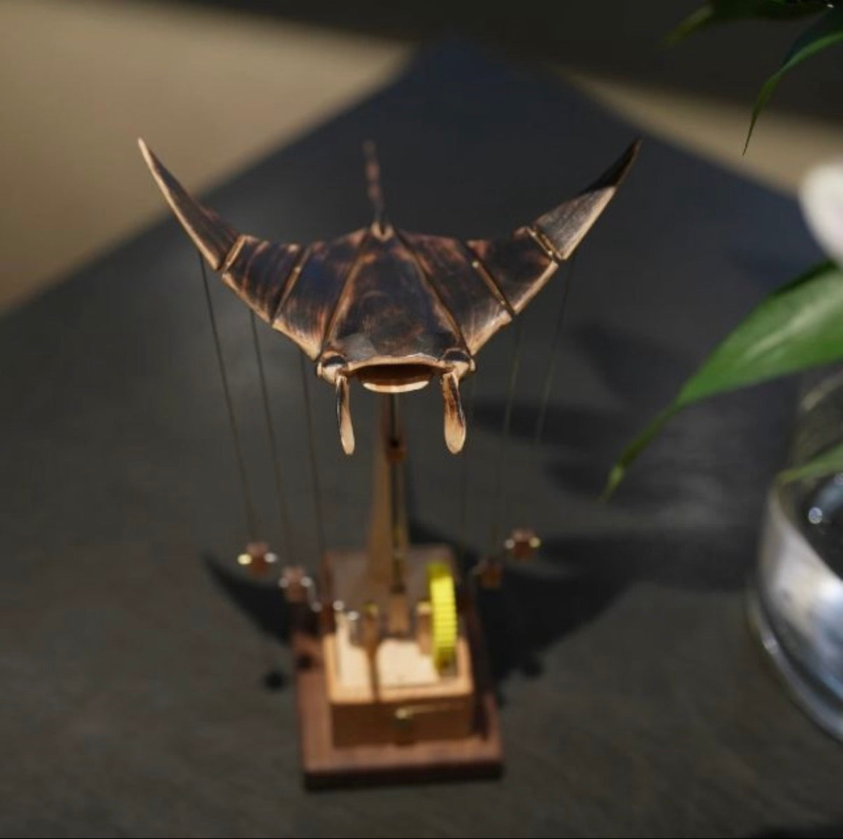 Feel overwhelmed at your desk? Fidgeting, scrolling, restless energy piling up? Bring the ocean's silent ballet to your space. Our walnut mantaray, powered by interlocking gears, glides with every turn of