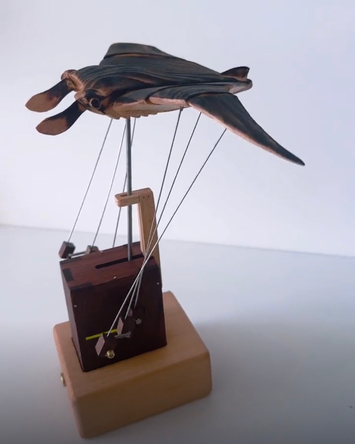 Incredible piece of art! I’ve never seen anything like it. The wood grain and mechanical design are breathtaking. My wife says it feels like watching a real manta ray glide through water. We both love it.